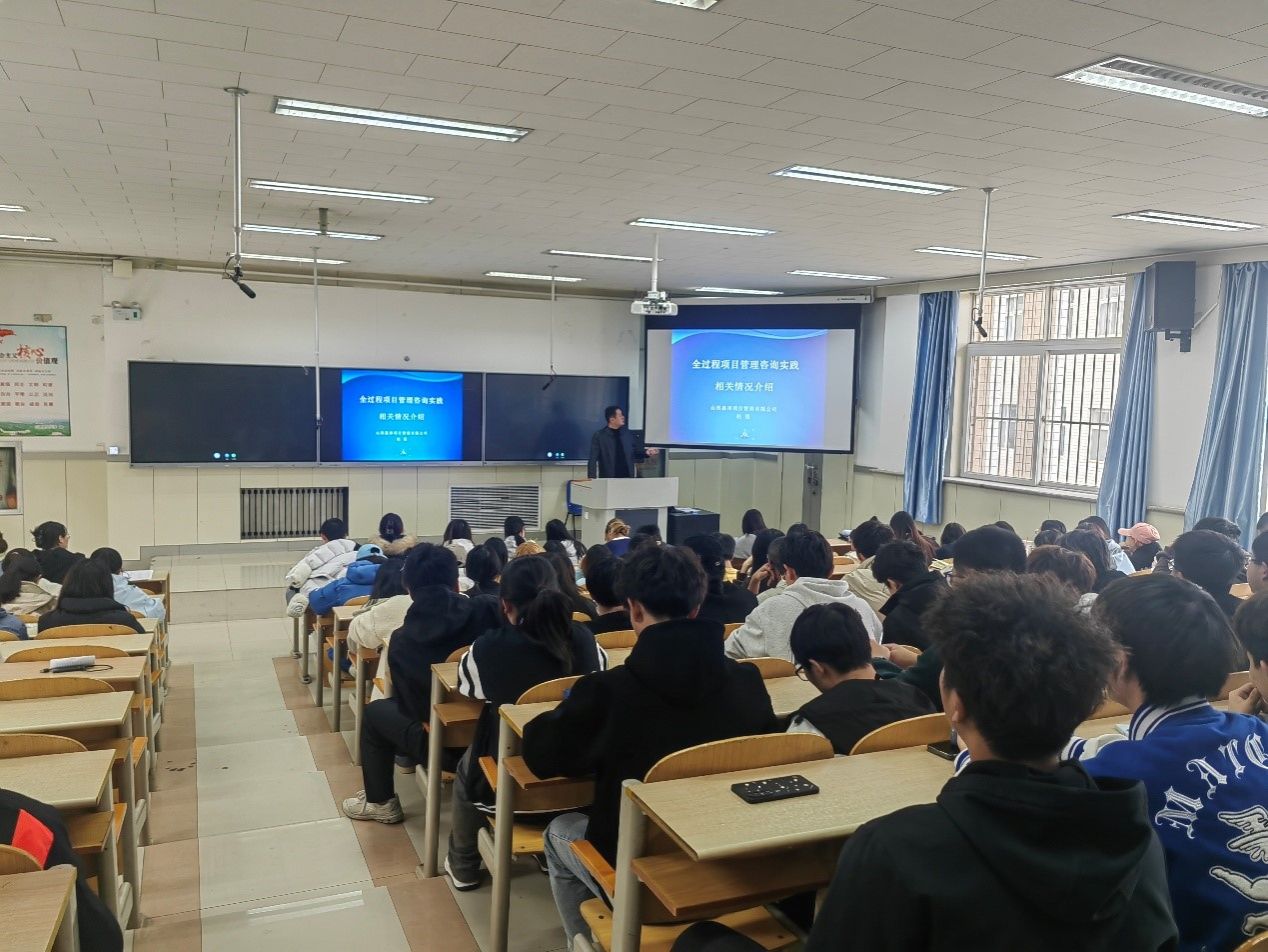 在立信201阶教组织了《工程大讲堂》第十一期活动。第十一期以“全过程项目管理咨询实践”为题,邀请了山西嘉泽项目管理有限公司副总经理赵强做主题报告。2023级工程管理、工程造价、房地产开发与管理专业的150余名本科生和相关专业教师参加活动,会议由学院副院长荆树伟主持。