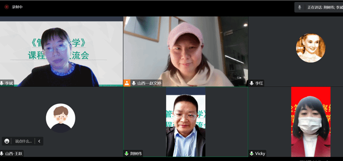 为推进一流课程建设,树立课程建设新理念,推进课程改革创新,11月16日上午,亚洲无码 启动《管理统计学》课程建设线上交流会。会议邀请智慧树课程顾问赵文婷老师参加,会议由课程负责人李斌老师主持,参会人员有学院教学副院长荆树伟,课程团队成员李红老师、张玲老师。