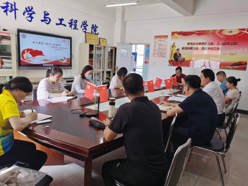 党委结合学校2022年全面从严治党工作会议精神,以培育创建“全国党建工作标杆院系”为契机,全面抓牢抓紧抓实党委理论学习中心组示范项目,通过“自学、领学、研讨学、实践学”的“四学”方式,制定全年学习计划。从政治建设、思想建设、组织建设、廉政建设、作风建设、制度建设等六个方面着手,明确全面从严治党政治责任,坚定不移推动全面从严治党向纵深发展。