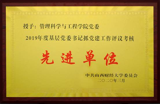 学院党委的政治引领、思想凝聚、组织保证等作用更加凸显,学院各项工作取得明显进展。先后获评1个全国党建工作标杆院系、1个全国高校党建工作样板支部、1个全国高校百个研究生样板支部、2个山西省教育系统先进基层党组织、1 个全省高校党建工作标杆院系、1 个全省高校研究生样板支部、2个校级党建“双带头人”教师党支部书记工作室、发展了一批高素质党员,培养了一批学术强、政治强的基层党组织骨干队伍,发表了一批基层党建论文,取得若干个省部级以上党建工作奖,以卓有成效的党建工作开创学院事业发展的建设新高地,使学院党委真正建设成领导机制科学,政治引领突出,育人成效显著、组织落实精准、改革动力充沛的全国党建工作标杆院系。