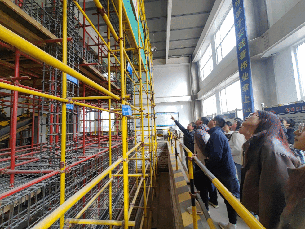 在老师的引导下,学生们在实训中心参观了现代化的施工模拟场地和实训设施,深入了解了建筑施工的各个环节和技术要点,沉浸式体验了关键施工步骤的操作场景和实施效果。室内实训环节中,学生们体验了先进的装配式实训工作台和实景工地工法施工流程展示区,通过整体和细节观摩体验,同学们不仅了解了建筑领域先进的装配式施工方法和结构形式,而且全方位认识了建筑物从地基基础、钢筋混凝土、二次结构、装饰装修的全过程工法展示。在全程参观中,学生们不仅仅是观摩者,更是实践者和探索者。他们通过亲身参与和实际操作,加深了对专业技能的理解,锻炼了解决问题的能力,同时也增强了团队合作和沟通交流的能力。