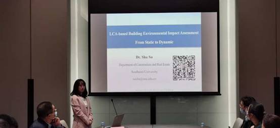 东南大学苏舒博士做了题为“建筑环境影响评价:从静态到动态”的报告。苏舒博士提出建立BIM-DLCA模型,基于动态视角加强对建筑环境分析的时效性。