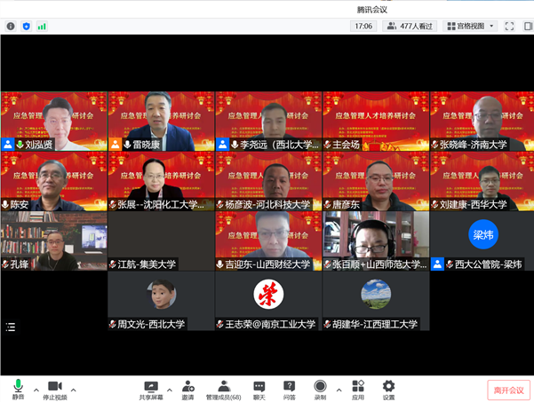为进一步优化应急管理专业人才培养方案,提高应急管理人才培养质量,4月2日,亚洲无码 应急管理教研室组织全体教师参加了由应急管理本科专业高校联盟主办、西北大学应急管理学院承办的线上“应急管理人才培养研讨会(2022)”。会议由西北大学应急管理学院院长雷晓康和西北大学公共管理学院副院长李尧远主持,来自西北大学、中国人民大学、南京师范大学、山西师范大学等高校的25位专家学者就应急管理专业人才培养方案进行了汇报与交流。